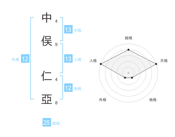 中俣 仁亞さんを姓名の画数から五運を鑑定