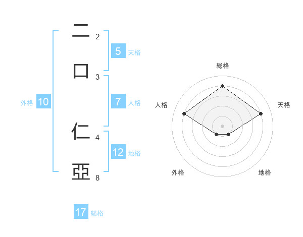 二口 仁亞さんの天格は5画の4点!