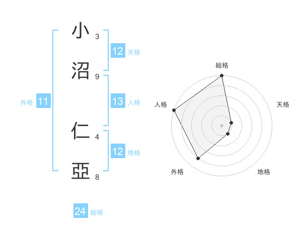 小沼 仁亞さんの総格は24画の5点!