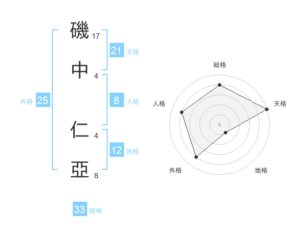 磯中 仁亞さんを姓名の画数から五運を鑑定