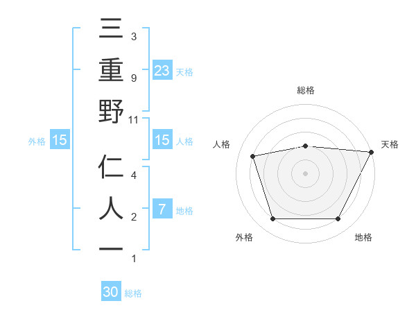 三重野 仁人一さんを姓名の画数から五運を鑑定