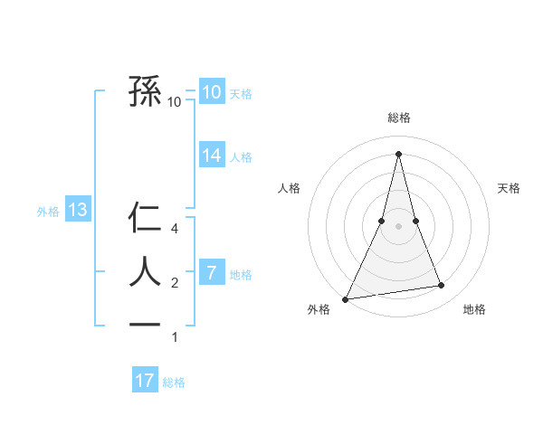 孫 仁人一さんの総格は17画の4点!