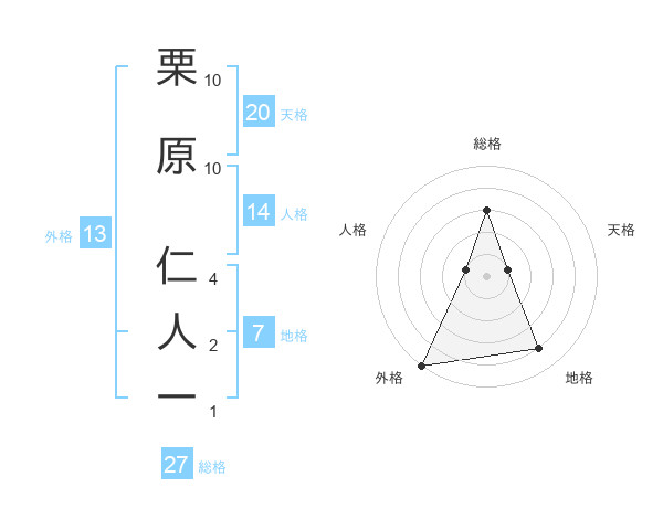栗原 仁人一さんを姓名の画数から五運を鑑定