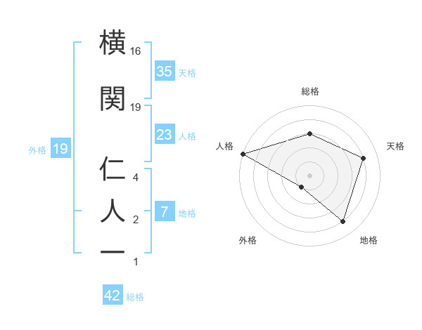 横関 仁人一さんを姓名の画数から五運を鑑定