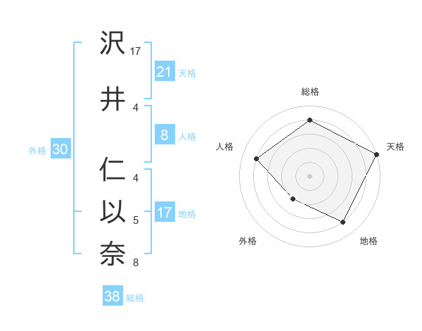 沢井 仁以奈さんを姓名の画数から五運を鑑定