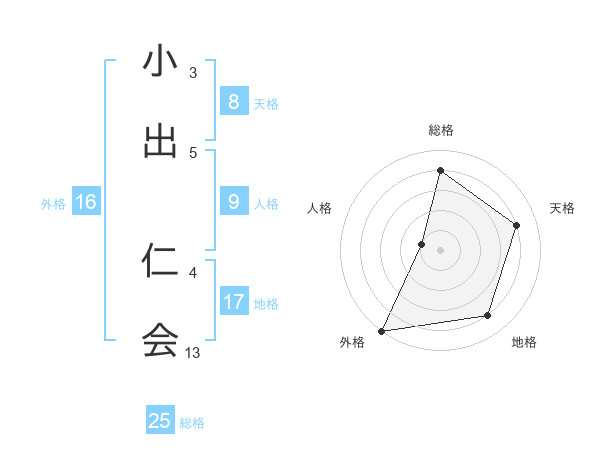 小出 仁会さんを姓名の画数から五運を鑑定