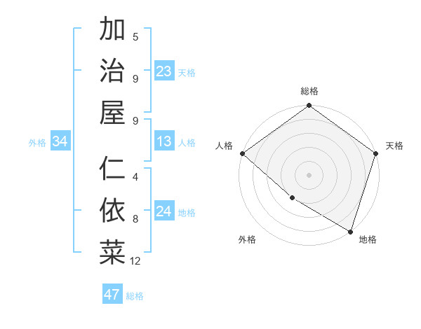 加治屋 仁依菜さんの総格は47画の5点!