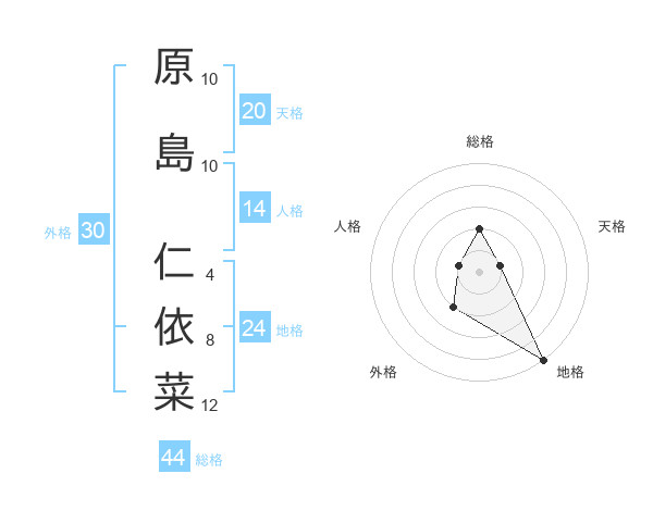 原島 仁依菜さんを姓名の画数から五運を鑑定
