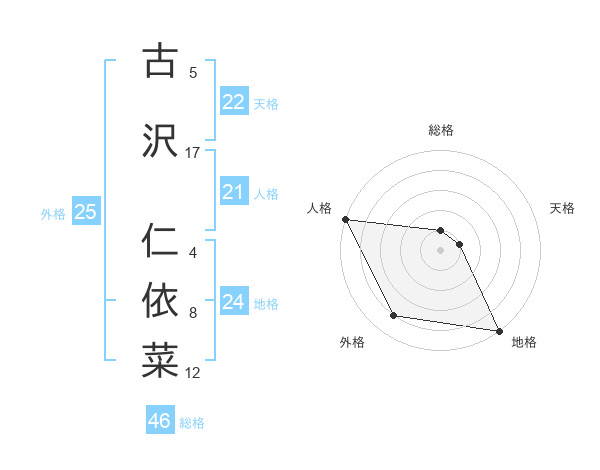 古沢 仁依菜さんを姓名の画数から五運を鑑定