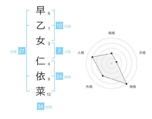 早乙女 仁依菜さんを姓名の画数から五運を鑑定