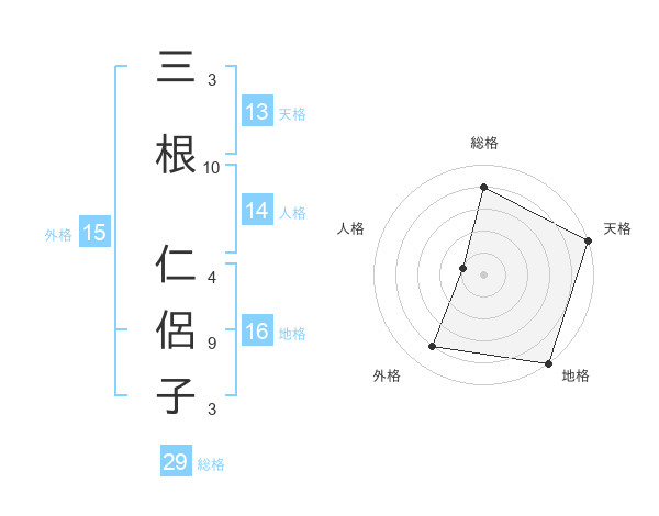 三根 仁侶子さんの総格は29画の4点!