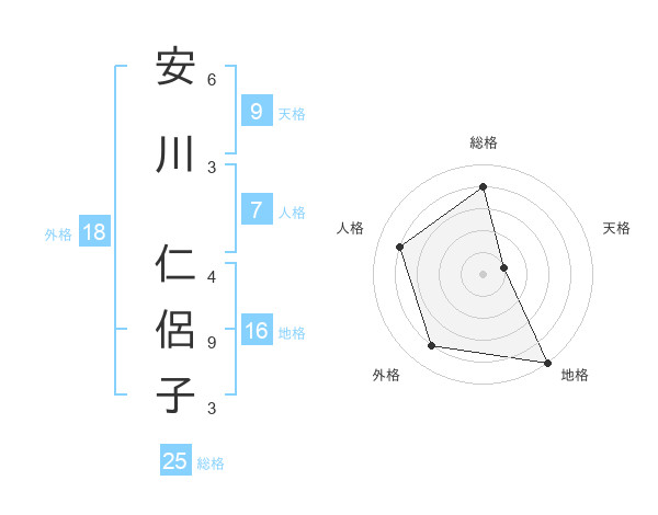 安川 仁侶子さんの総格は25画の4点!