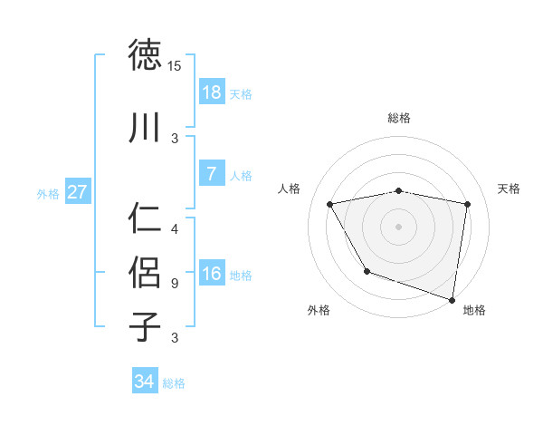 徳川 仁侶子さんの天格は18画の4点!