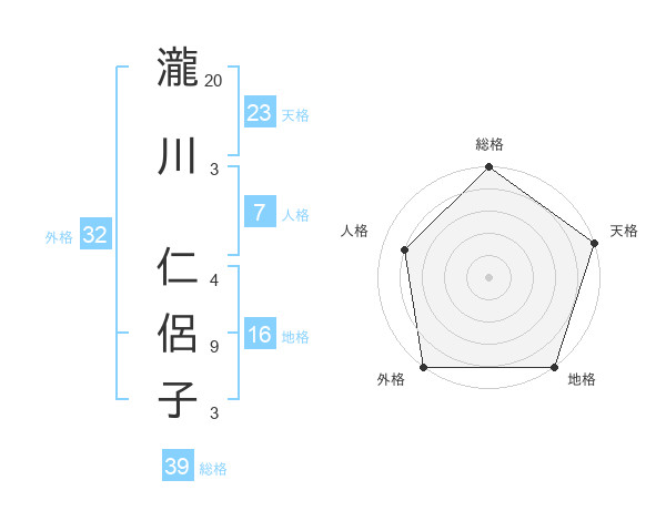 瀧川 仁侶子さんの総格は39画の5点!