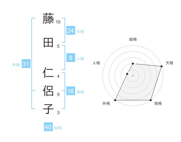 藤田 仁侶子さんを姓名の画数から五運を鑑定