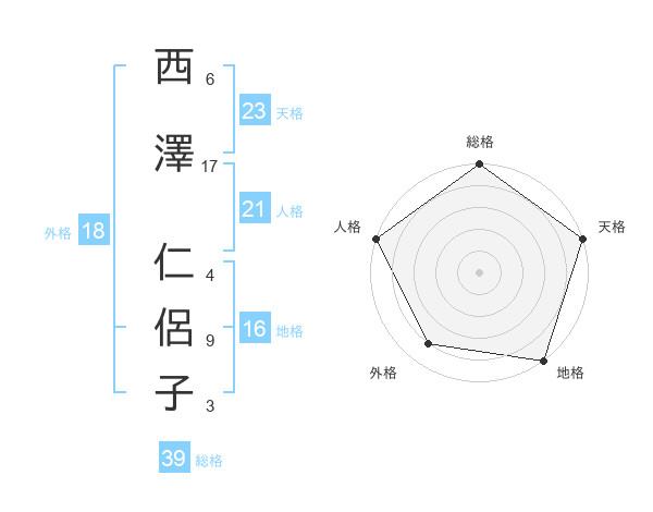 西澤 仁侶子さんを姓名の画数から五運を鑑定