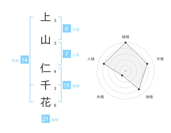 上山 仁千花さんを姓名の画数から五運を鑑定