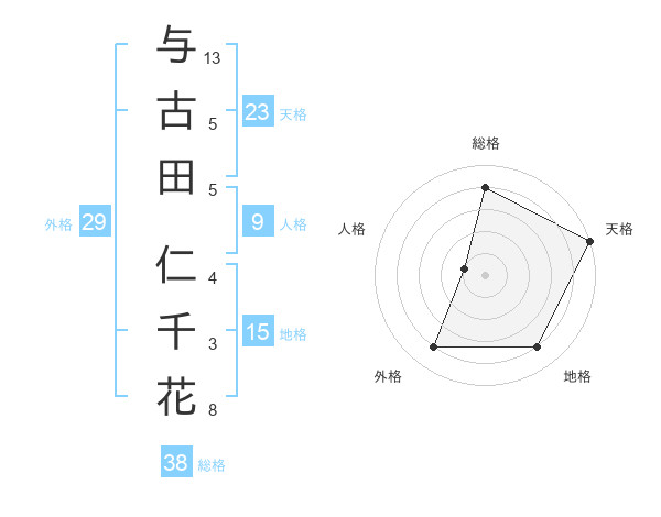 与古田 仁千花さんの総格は38画の4点!