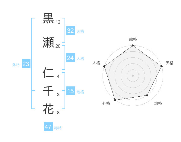 黒瀬 仁千花さんを姓名の画数から五運を鑑定