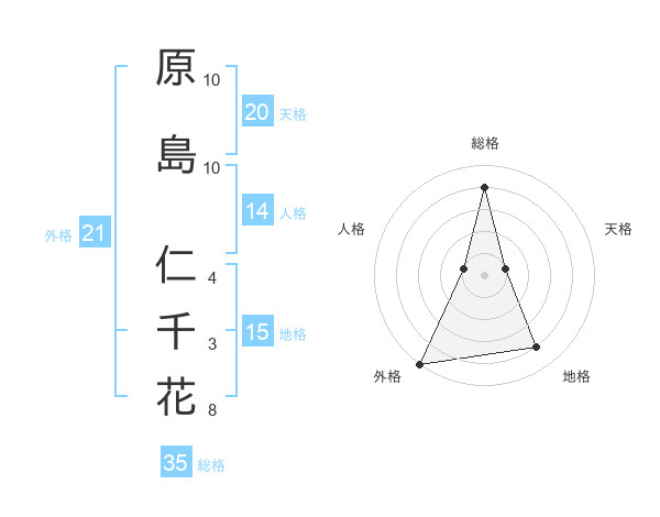 原島 仁千花さんを姓名の画数から五運を鑑定