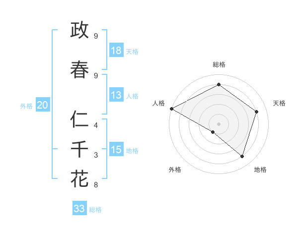 政春 仁千花さんの天格は18画の4点!