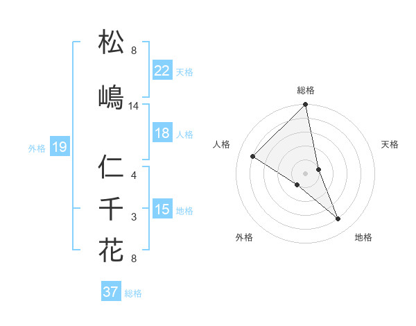 松嶋 仁千花さんを姓名の画数から五運を鑑定