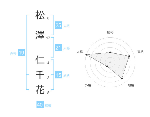 松澤 仁千花さんを姓名の画数から五運を鑑定