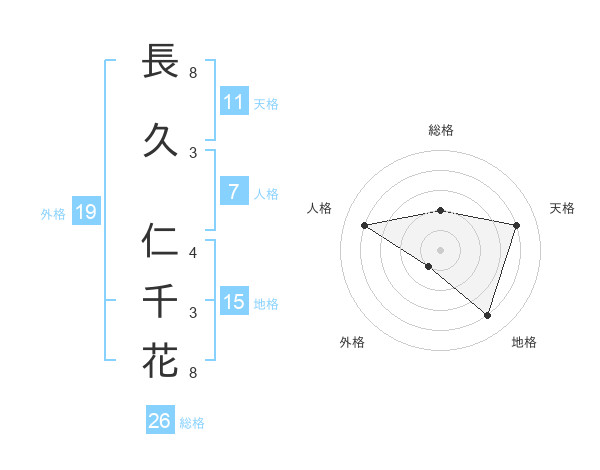 長久 仁千花さんを姓名の画数から五運を鑑定