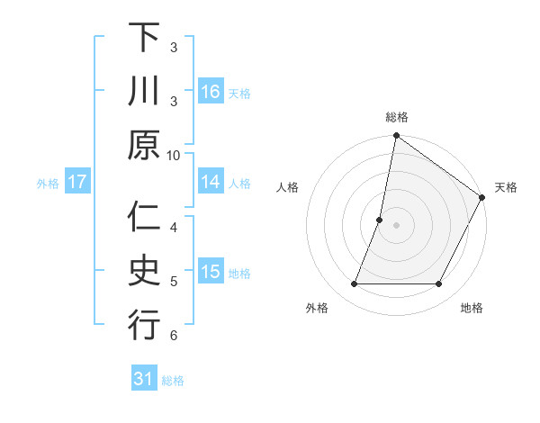 下川原 仁史行さんを姓名の画数から五運を鑑定
