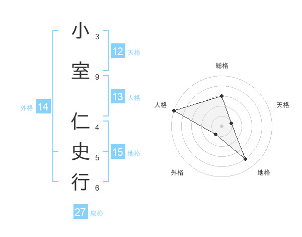 小室 仁史行さんを姓名の画数から五運を鑑定