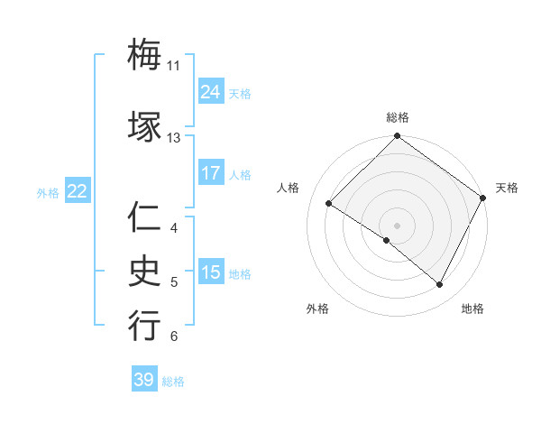梅塚 仁史行さんを姓名の画数から五運を鑑定