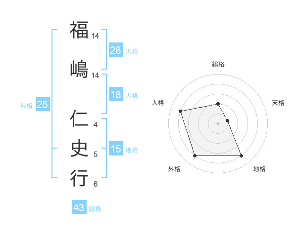 福嶋 仁史行さんを姓名の画数から五運を鑑定