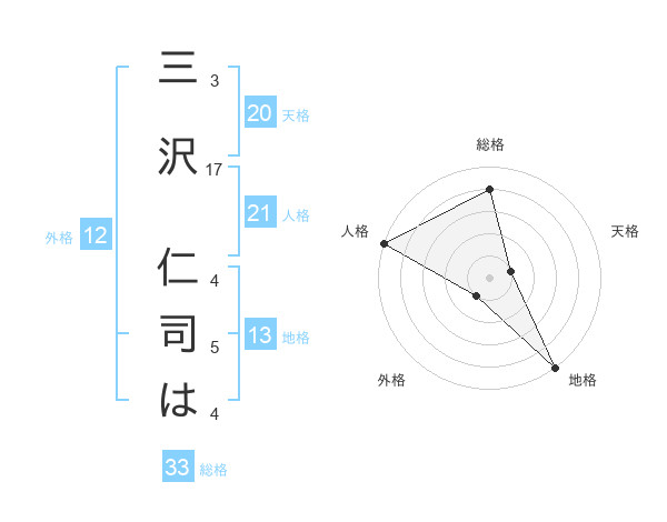 三沢 仁司はさんの地格は13画の5点!