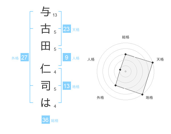 与古田 仁司はさんを姓名の画数から五運を鑑定