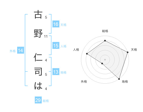 古野 仁司はさんを姓名の画数から五運を鑑定