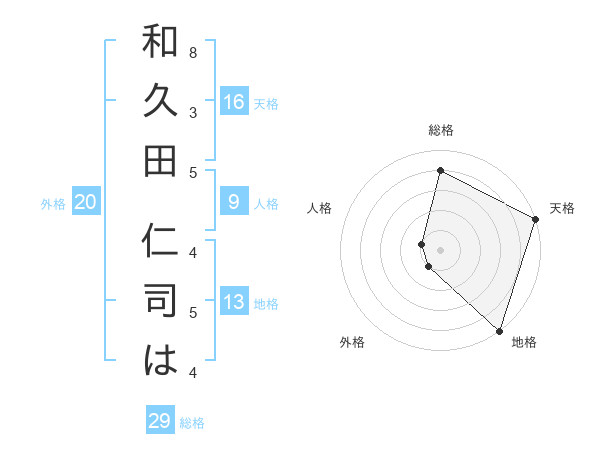 和久田 仁司はさんを姓名の画数から五運を鑑定