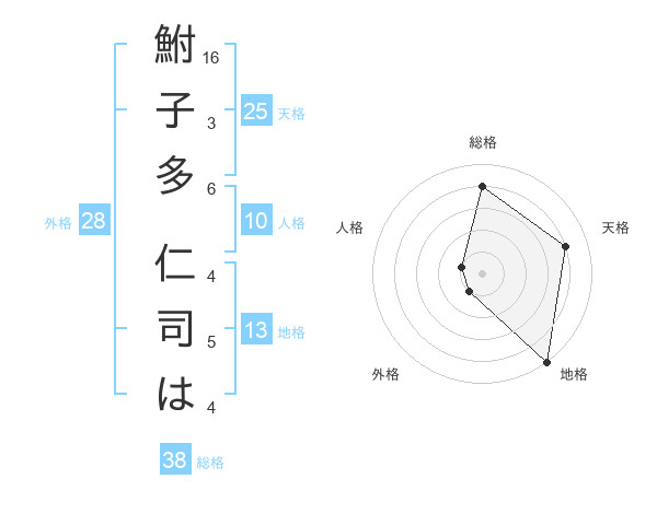鮒子多 仁司はさんを姓名の画数から五運を鑑定