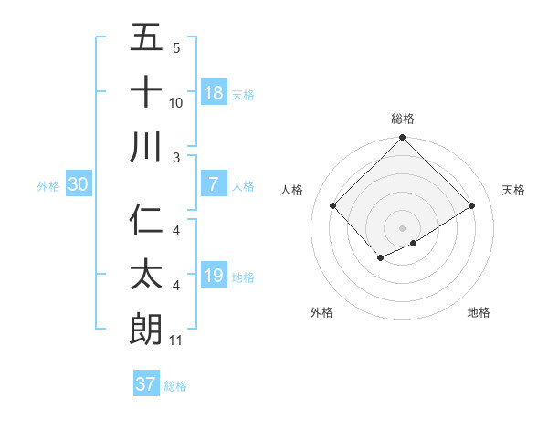 五十川 仁太朗さんを姓名の画数から五運を鑑定