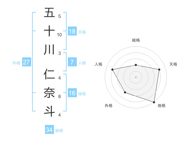 五十川 仁奈斗さんを姓名の画数から五運を鑑定