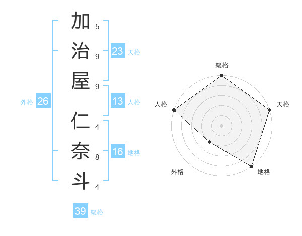 加治屋 仁奈斗さんの天格は23画の5点!