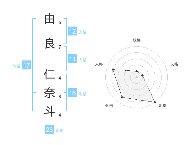 由良 仁奈斗さんを姓名の画数から五運を鑑定