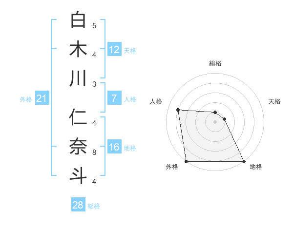 白木川 仁奈斗さんを姓名の画数から五運を鑑定