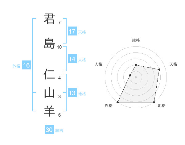 君島 仁山羊さんの総格は30画の2点!