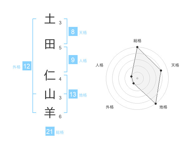 土田 仁山羊さんを姓名の画数から五運を鑑定