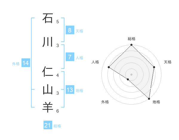 石川 仁山羊さんを姓名の画数から五運を鑑定