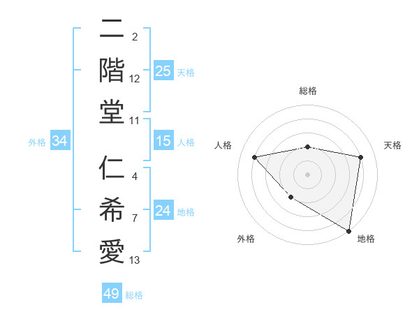二階堂 仁希愛さんを姓名の画数から五運を鑑定