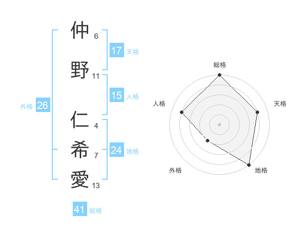 仲野 仁希愛さんの天格は17画の4点!