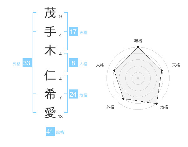 茂手木 仁希愛さんの総格は41画の5点