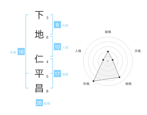 下地 仁平昌さんを姓名の画数から五運を鑑定
