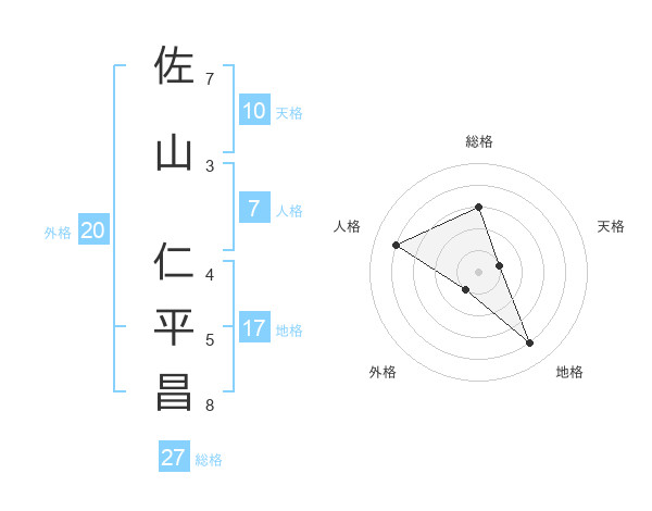 佐山 仁平昌さんの総格は27画の3点!